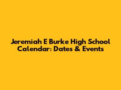 Jeremiah E Burke High School Calendar: Dates & Events
