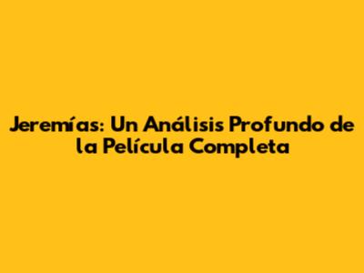 Jeremías: Una Mirada Profunda A La Película Completa