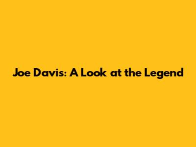 Joe Davis: A Look At The Legend