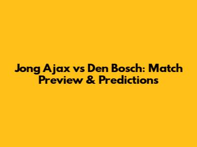 Jong Ajax Vs Den Bosch: Match Preview & Predictions