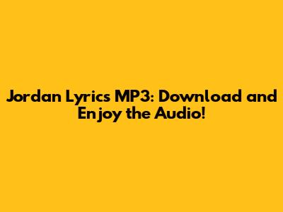 Jordan Lyrics MP3: Download And Enjoy The Audio!