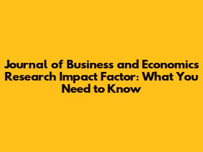 Journal Of Business And Economics Research Impact Factor