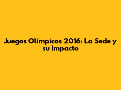 Juegos Olímpicos 2016: La Sede Y Su Impacto
