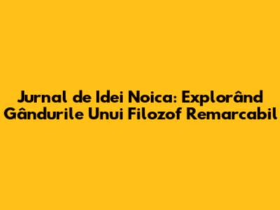 Salutare, pasionați de filozofie și de profunzimile gândirii umane! Astăzi, ne adâncim în universul lui Constantin Noica, un nume ce reverberează cu putere în peisajul filozofic românesc și nu numai. Vom explora "Jurnalul de idei Noica", o colecție prețioasă de gânduri, observații și reflecții care ne oferă o fereastră unică spre atelierul mental al acestui spirit ager. Acest jurnal nu este doar o simplă înșiruire de notițe, ci o hartă a sufletului și a intelectului său, un loc unde ideile prind contur, se ciocnesc și se transformă. Pentru oricine este fascinat de modul în which marii gânditori își cultivă și își dezvoltă propriile concepte, acest jurnal reprezintă o sursă inestimabilă de inspirație și de studiu. Vom analiza cum Noica își formulează întrebările, cum explorează diverse teme, de la cele metafizice la cele legate de experiența cotidiană, și cum reușește să lege, aparent, idei disparate într-un tot unitar. Pornind de la "Jurnalul de idei Noica", vom dezvălui nu doar conținutul, ci și metoda sa de a gândi, de a scrie și de a interacționa cu lumea ideilor. Este o invitație deschisă către toți cei care doresc să înțeleagă mai bine procesul creativ și modul în which filozofia poate fi trăită, nu doar studiată. Pregătiți-vă să fiți uimiți de agerimea minții sale și de frumusețea limbajului său, căci Noica nu a fost doar un filozof, ci și un maestru al cuvântului. Vom demara această incursiune cu o prezentare generală a importanței jurnalelor filozofice și a locului pe care îl ocupă "Jurnalul de idei Noica" în acest context. Apoi, vom intra în detalii, analizând teme specifice și modul în which acestea sunt abordate de către filozof. Nu vom ezita să aducem în discuție și aspecte mai puțin cunoscute ale operei sale, oferind o perspectivă cât mai completă și mai nuanțată. Sperăm ca, prin această explorare, să redescoperim sau să descoperim pentru prima dată geniul lui Constantin Noica și să fim inspirați să ne cultivăm propriile noastre jurnale de idei.