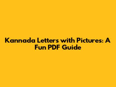 Kannada Letters With Pictures: A Fun PDF Guide