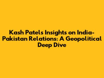 Kash Patel On India-Pakistan: Geopolitical Insights
