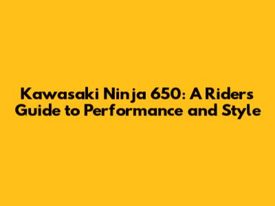 Kawasaki Ninja 650: A Rider's Guide To Performance And Style