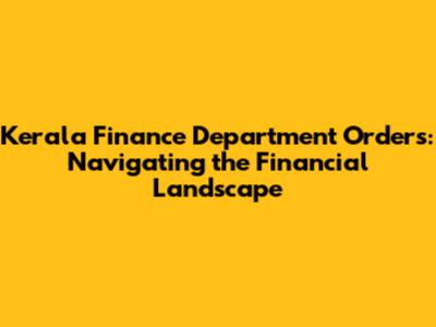 Kerala Finance Department Orders: A Comprehensive Overview