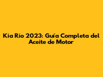 Kia Rio 2023: Guía Completa Del Aceite De Motor