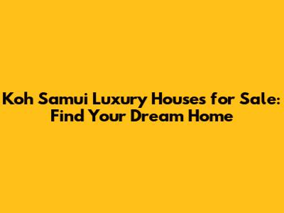 Koh Samui Luxury Houses For Sale: Find Your Dream Home
