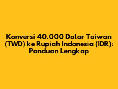 Jadi, dengan nilai tukar 1 TWD = 470 IDR, 40.000 TWD setara dengan 18.800.000 IDR.