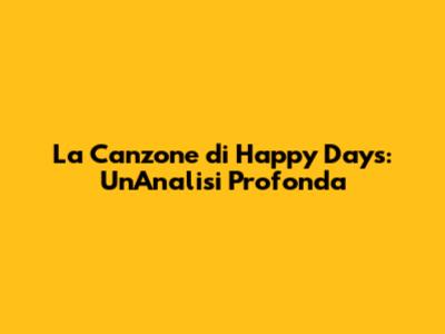 La Canzone Di Happy Days: Un'Analisi Profonda