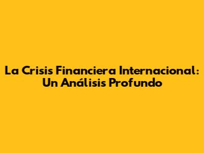 La Crisis Financiera Internacional: Entendiendo El Impacto Global