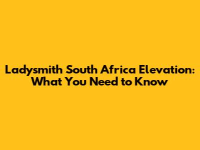 Ladysmith South Africa Elevation: What You Need To Know
