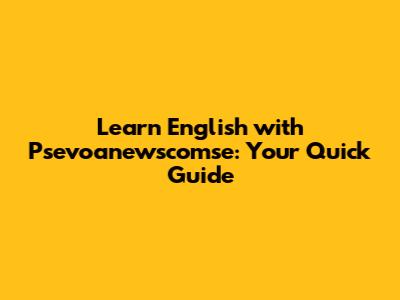Learn English With Psevoanewscomse: Your Quick Guide