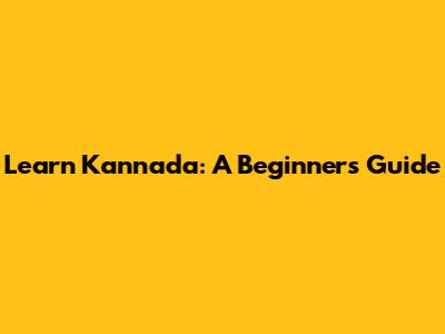 Learn Kannada: A Beginner's Guide