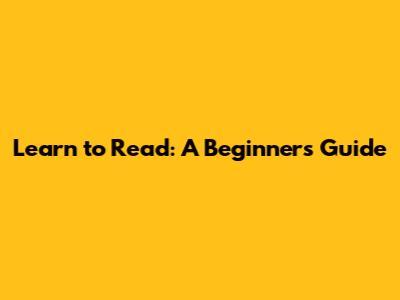 Learn To Read: A Beginner's Guide