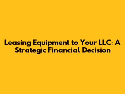 Leasing Equipment To Your LLC: A Smart Business Move?