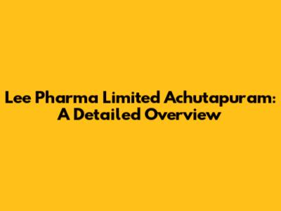 Lee Pharma In Achutapuram: A Detailed Overview