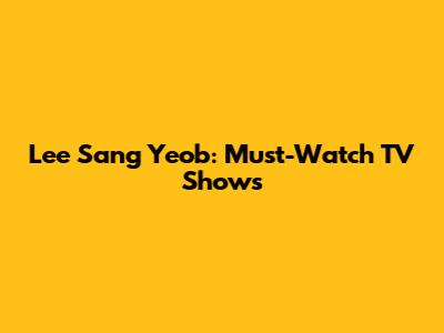 Lee Sang Yeob: Must-Watch TV Shows