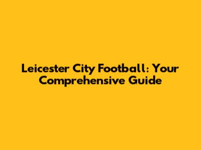 Leicester City Football: Your Comprehensive Guide