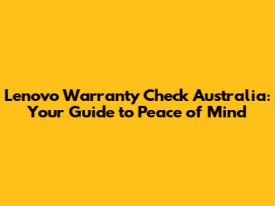 Lenovo Warranty Check In Australia: A Comprehensive Guide