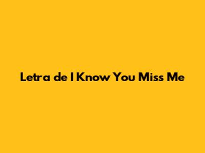 Letra De I Know You Miss Me