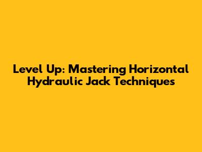 Level Up: Mastering Horizontal Hydraulic Jack Techniques