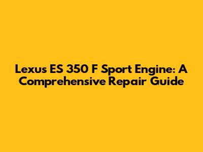 Lexus ES 350 F Sport Engine: Guide To Repair