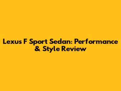 Lexus F Sport Sedan: Performance & Style Review