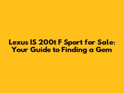 Hey car enthusiasts! Are you on the hunt for a stylish, sporty, and reliable ride? Look no further, because the Lexus IS 200t F Sport is here to steal your heart! This car blends luxury with performance, offering an exhilarating driving experience that’s hard to beat. But where do you even start looking when you're in the market for a Lexus IS 200t F Sport for sale? Don't worry, guys, I've got you covered. This guide will walk you through everything you need to know, from understanding what makes the F Sport trim special to finding the best deals and ensuring you're making a smart purchase.