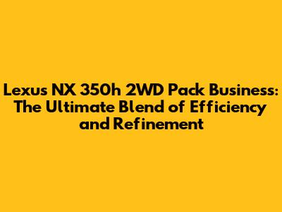 Hey guys! Are you looking for a stylish, efficient, and business-ready SUV? Let's dive deep into the Lexus NX 350h 2WD Pack Business! This vehicle isn't just a mode of transportation; it's a statement. It perfectly blends Lexus's renowned luxury with a practical, business-oriented design. Whether you're cruising through city streets or heading to an important meeting, the NX 350h ensures you do it in style and comfort. The Lexus NX 350h 2WD Pack Business isn't just about getting from point A to point B; it's about elevating the entire driving experience. With its sleek exterior, meticulously crafted interior, and advanced technology features, this SUV is designed to impress. The hybrid powertrain offers a smooth and efficient ride, while the spacious cabin provides ample room for passengers and cargo. Whether you're commuting to work, running errands, or embarking on a weekend getaway, the NX 350h is the perfect companion for any adventure. Plus, with its reputation for reliability and durability, you can rest assured that this SUV will provide years of dependable service. So why settle for ordinary when you can experience the extraordinary? Step into the world of Lexus and discover the NX 350h 2WD Pack Business – where luxury meets practicality and performance meets efficiency. It's time to elevate your driving experience and make a statement wherever you go.