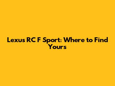 Lexus RC F Sport: Where To Find Yours