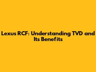 Lexus RCF: Understanding TVD And Its Benefits