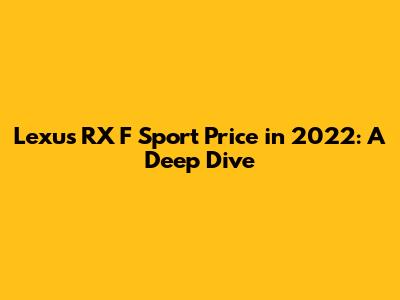 Hey there, car enthusiasts! So, you're curious about the Lexus RX F Sport price in 2022, huh? You've come to the right place. This article is your ultimate guide to understanding everything about the cost of this sporty and luxurious SUV. We'll break down the factors influencing the price, compare it with competitors, and give you some insider tips to help you make an informed decision. Buckle up, because we're about to dive deep into the world of the RX F Sport!