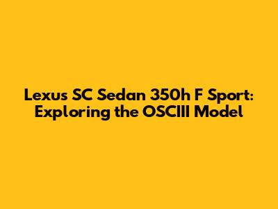 Lexus SC Sedan 350h F Sport: Exploring The OSCIII Model