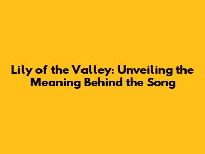 Hey guys! Ever wondered about the real meaning behind a song? Today, we're diving deep into "Lily of the Valley", a track that has captured the hearts of many. This isn't just any song; it's a lyrical journey filled with symbolism and emotion. So, buckle up and let's explore what makes this song so special!