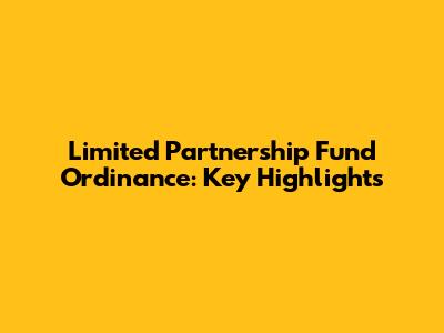 Limited Partnership Fund Ordinance: Key Highlights