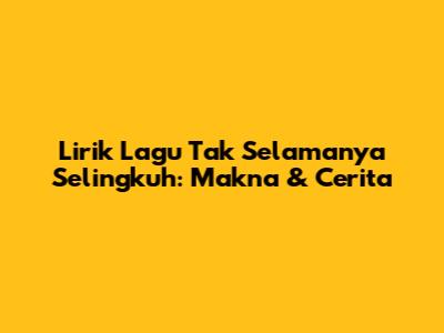 Hey guys, pernah nggak sih kalian denger lagu yang judulnya 'Tak Selamanya Selingkuh'? Lagu ini tuh beneran ngena banget buat yang pernah ngerasain atau bahkan jadi korban perselingkuhan. Bukan cuma sekadar lirik, tapi cerita di baliknya tuh bikin kita mikir ulang, kenapa sih perselingkuhan itu bisa terjadi dan apa dampaknya. Yuk, kita bedah bareng-bareng lirik lagu ini, biar kita makin paham dan nggak salah langkah ke depannya.