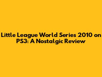 Little League World Series 2010 On PS3: A Nostalgic Review