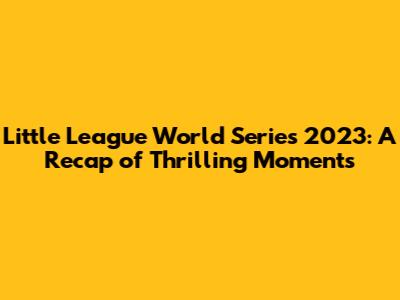 Little League World Series 2023: Thrilling Moments