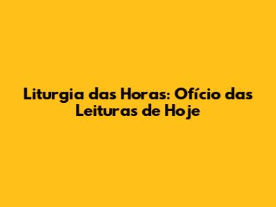 Liturgia Das Horas: Ofício Das Leituras De Hoje