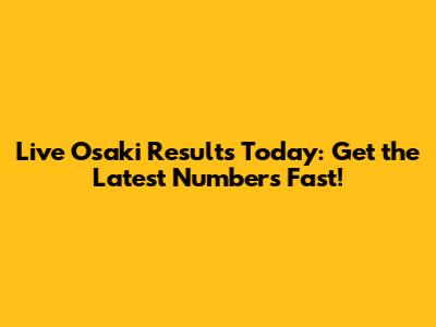 Live Osaki Results Today: Get The Latest Numbers Fast!