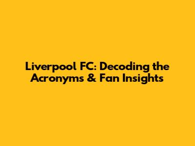 Liverpool FC: Decoding The Acronyms & Fan Insights