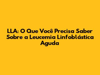 LLA: Compreendendo A Leucemia Linfoblástica Aguda