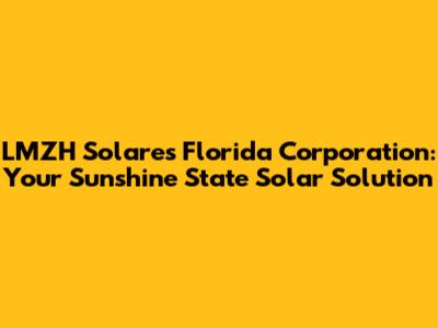 Hey guys! Ever wondered how to harness the power of the Florida sun to save money and help the planet? Let’s dive into the world of LMZH Solares Florida Corporation, your potential partner in going solar. We're going to explore who they are, what they do, and how they can help you make the switch to clean, renewable energy. Get ready to soak up some knowledge!