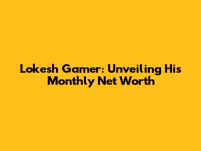 Lokesh Gamer: Unveiling His Monthly Net Worth