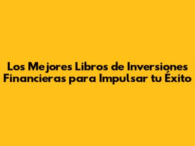 Los Mejores Libros De Inversiones Financieras Para Impulsar Tu Éxito