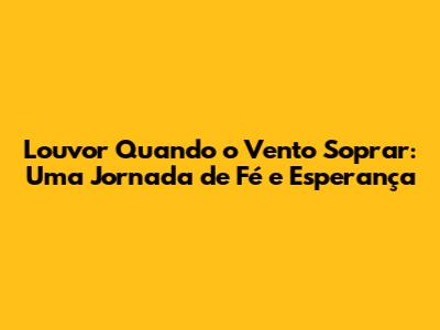 E por que louvar quando o vento sopra? Porque é no louvor que encontramos a força para seguir em frente, para superar os desafios e para celebrar a vida. É no louvor que fortalecemos a nossa , a nossa esperança e a nossa gratidão.