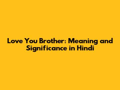 Love You Brother: Meaning And Significance In Hindi